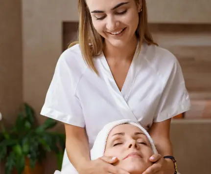Masaż twarzy, szyi, dekoltu, ale przede wszystkim głowy! Bo o głowę tutaj chodzi. Dbamy o nią zarówno pod kątem masażu, ale także pielęgnacji skóry głowy i włosów.